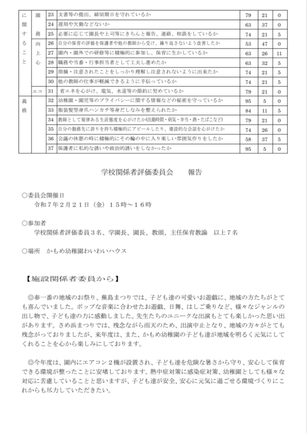 令和6年度かもめ幼稚園教職員による自己評価表②