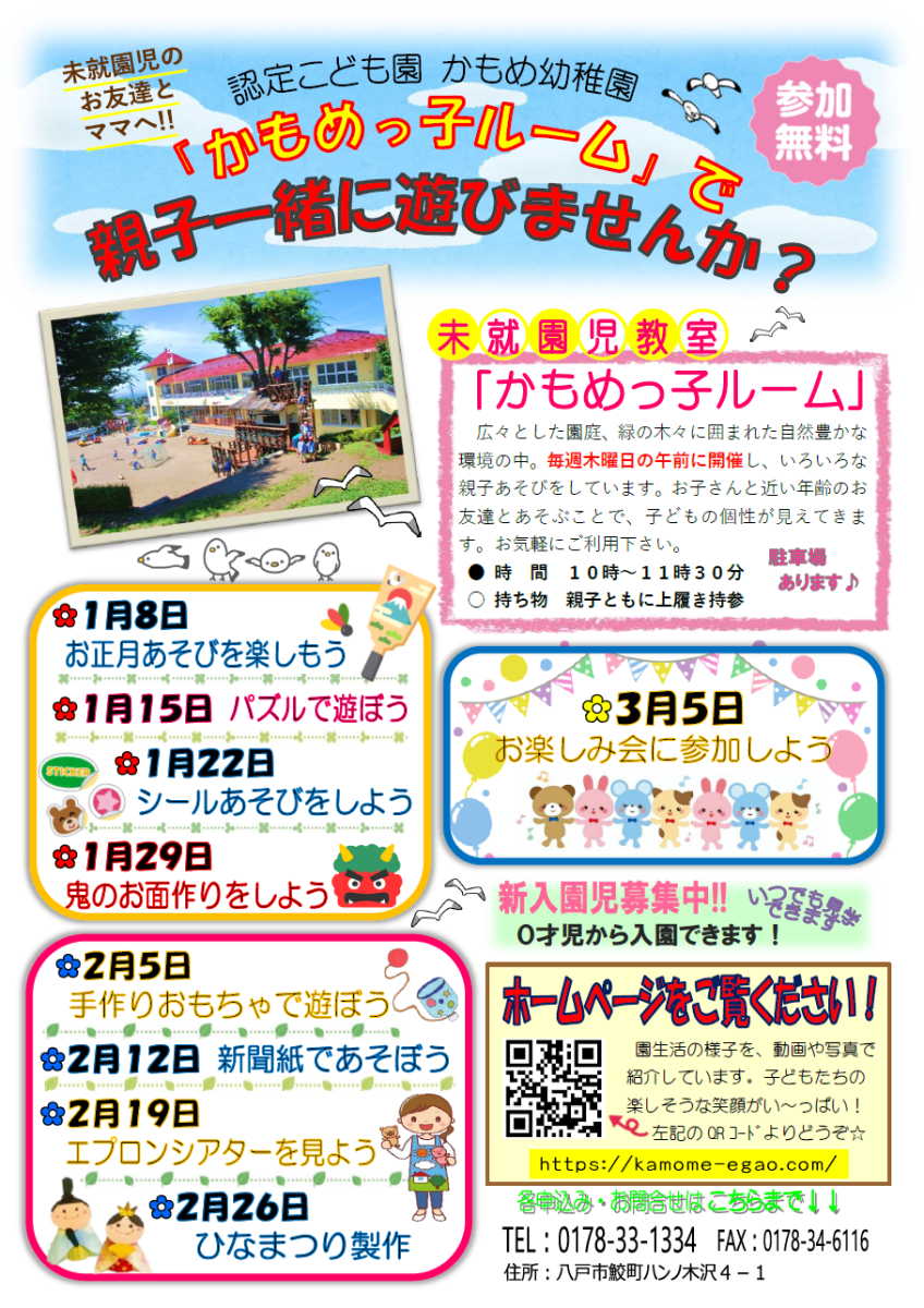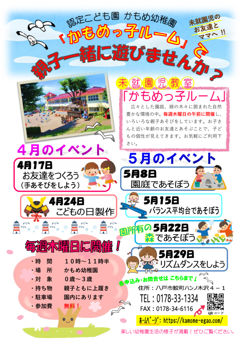 未就園の方ならどなたでもお気軽にご参加頂けます。 自然いっぱいの広々とした園庭や森で季節毎の親子遊びを通してプチ集団活動の体験をしてみませんか?
